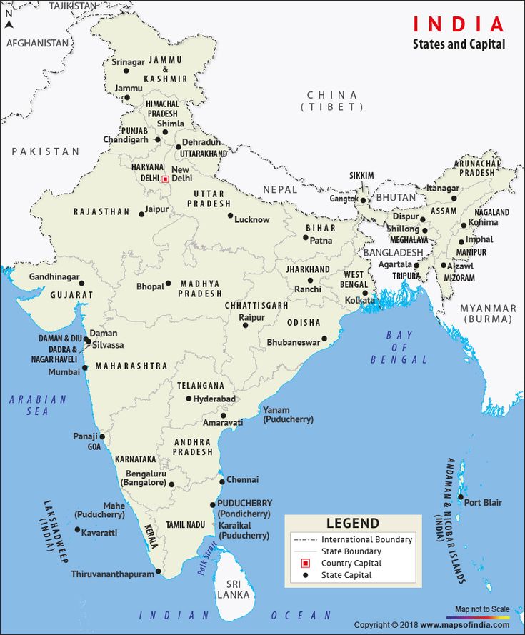 India is a constitutional union consisting of 28 States & Capitals of India and 8 Union Territories, with a total of 36 entities. The states and Union territories are segmented into 800 districts and smaller administrative units.